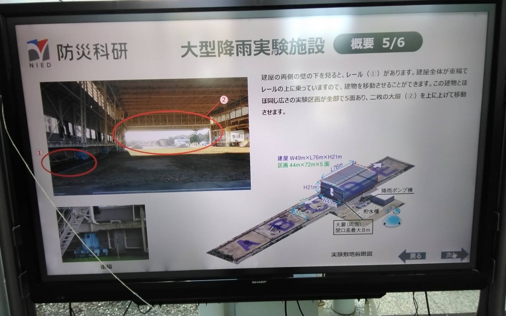地震の揺れを体験できる装置や、大雨降雨実験施設や巨大岩石摩擦試験機を見学・体感してきました。